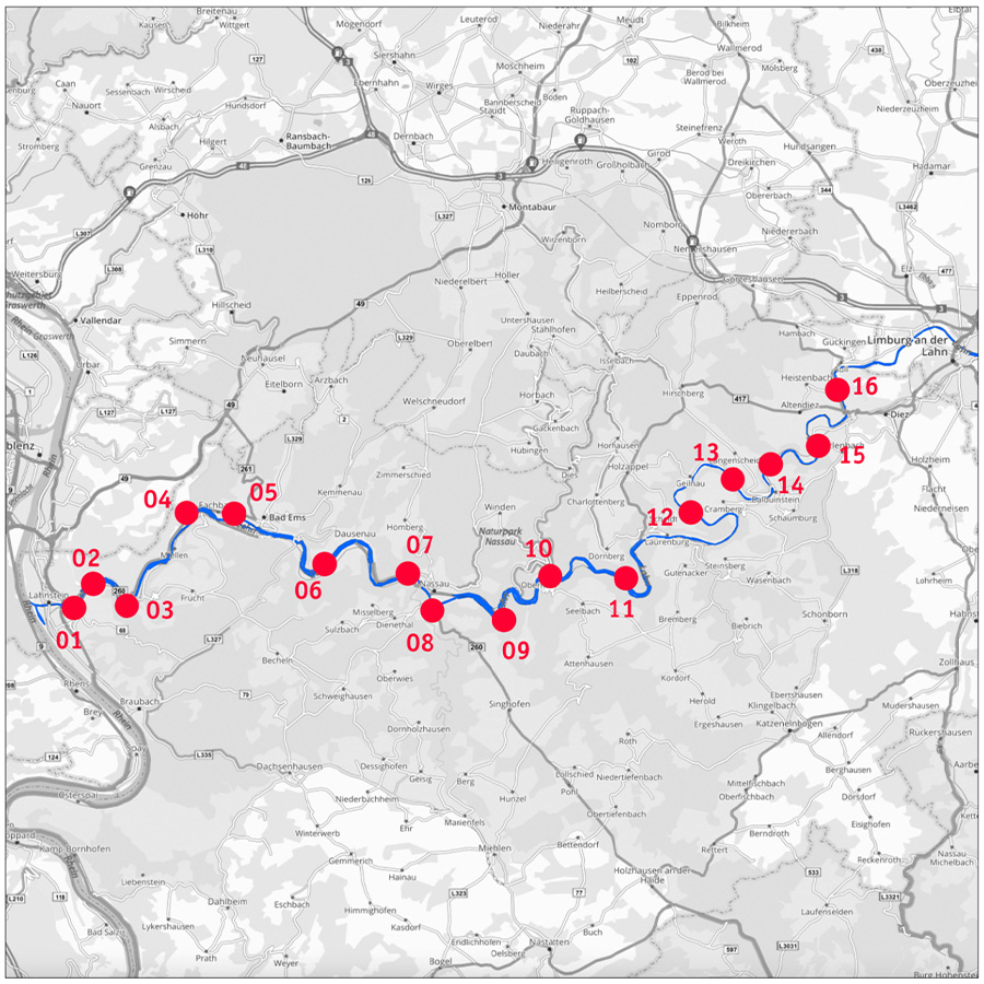 Die GDKE Rheinland-Pfalz wurde im Zuge des LIFE- Projekts „LiLa Living Lahn“ zur Aufwertung des Flusslaufs gebeten, fachlich Stellung zum historischen Verkehrsweg Lahntal zu beziehen. Um den Denkmalwert der baulichen Hinterlassenschaften entlang des Wasserwegs, aber auch entlang des Schienenwegs der Lahntalbahn einzuordnen, wurde eine Kurzdokumentation aller Staustufen und Eisenbahnbrücken im rheinland-pfälzischen Teil der Lahn zwischen Limburg und Lahnstein Auftrag gegeben.